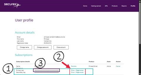 Click on the ‘Show’ link next to the primary or secondary key to see the value of your subscription key.